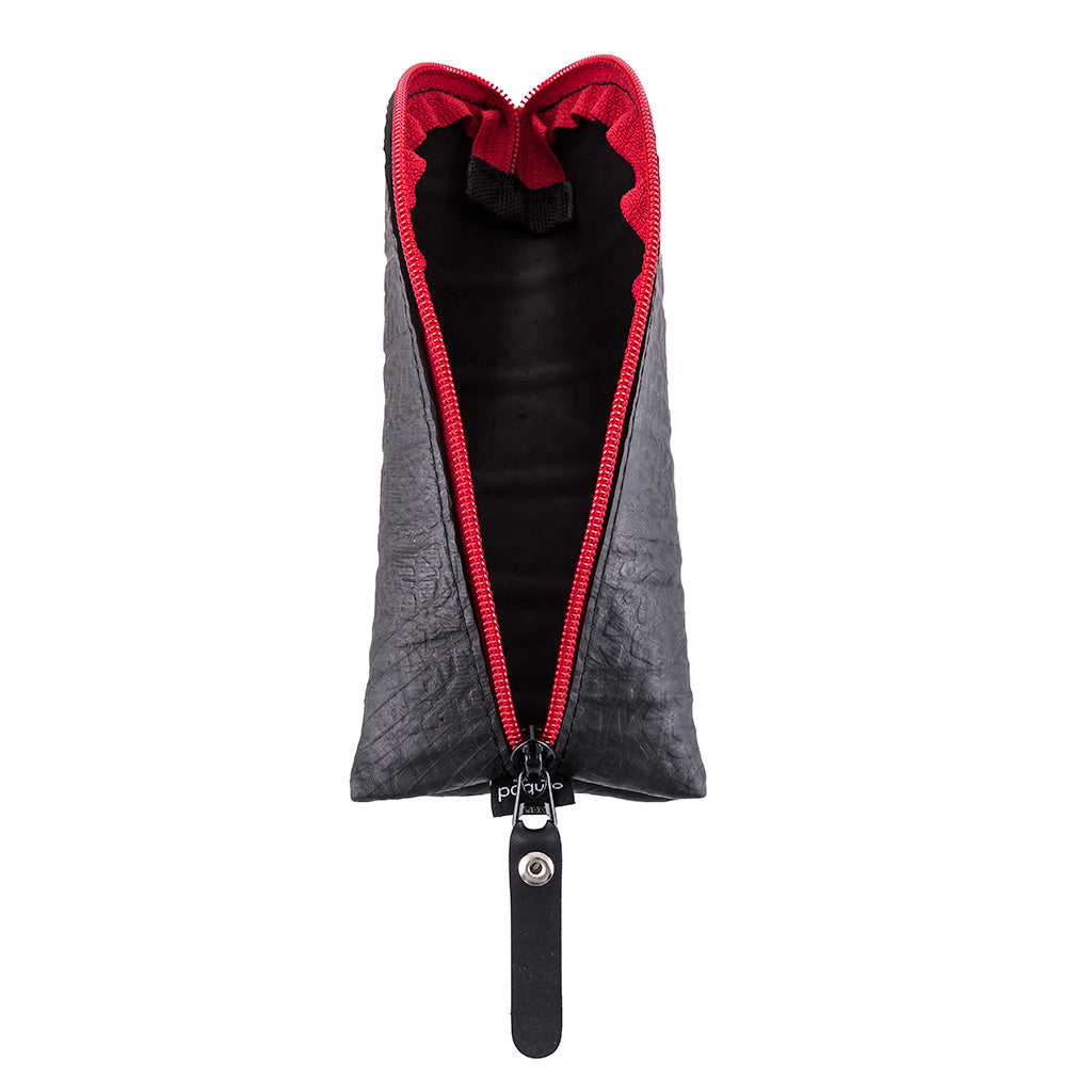 The Adela Vegan Glasses Case has been handcrafted with recycled rubber in an eco-friendly and cruelty free process. Reclaimed inner tubes are popular leather substitutes, due to their similar texture and unique patterns.