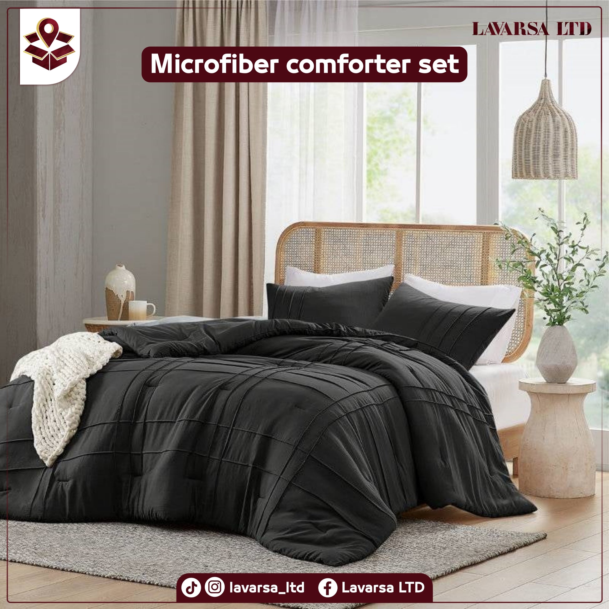 King size Pre-Washed Pleated Microfiber Comforter Set in Black